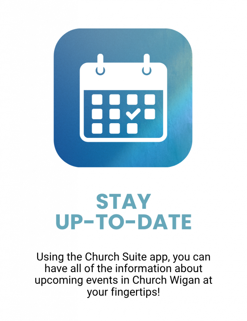 ‘My ChurchSuite’ is a user-friendly app that helps you stay connected with your Church Community, your Hub, and Church Wigan as a whole. Through the app, you can view upcoming events, sign up for newsletters, update your contact details and join groups or activities. It also allows you to receive important notifications. Whether on a smartphone, tablet or computer, the app is designed to be simple and accessible for everyone.